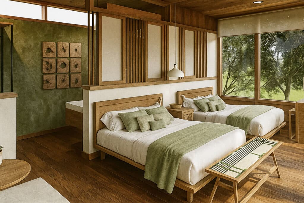 This spectacular suite is inspired by world-class surfer and Cabo Matapalo native, Brisa Hennessy. Designed to reflect the elegance of her movements on the waves and the calm focus in her gaze, it captures her spirit of excellence. With two Olympic diplomas and a career defined by passion and consistency, Brisa embodies the harmony of nature and discipline—qualities we honor in naming this unique space after her.